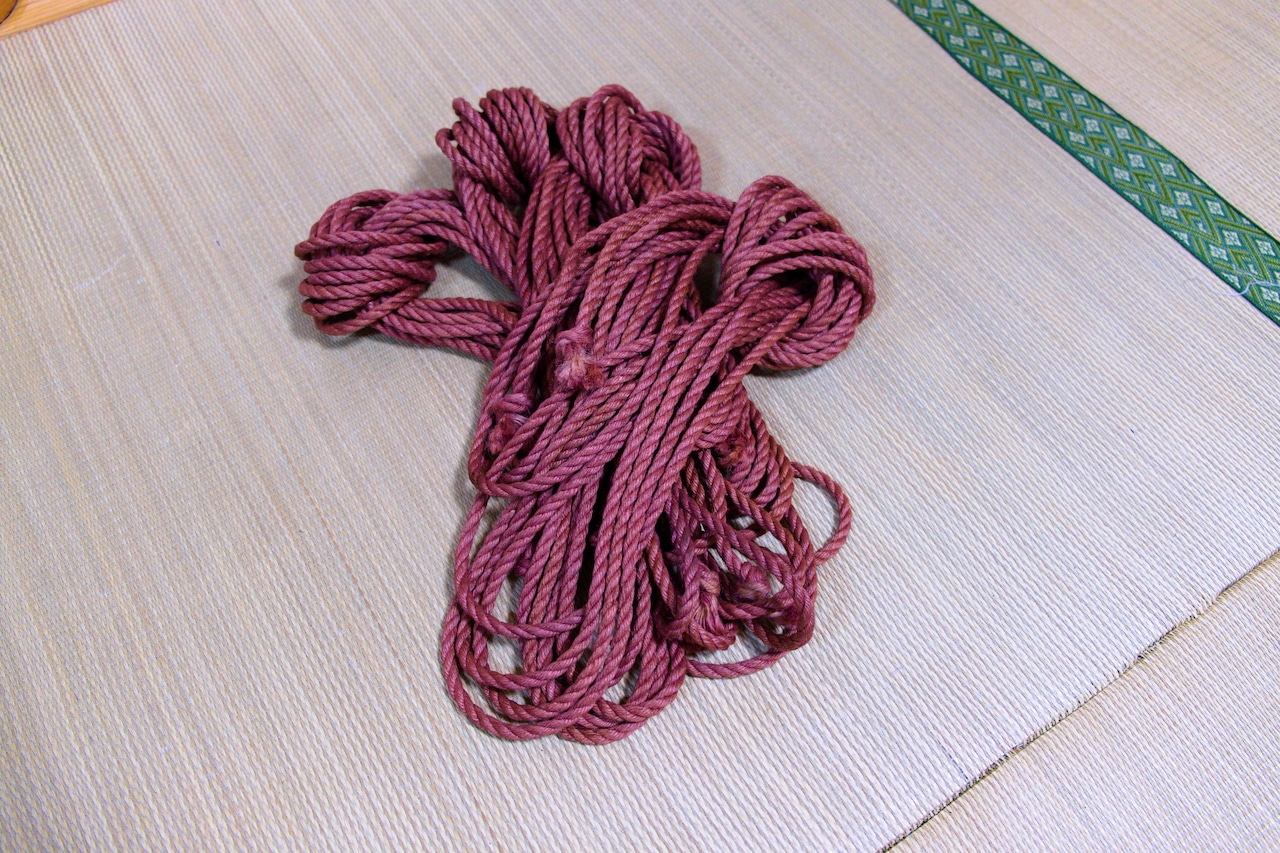 こだわりの天然麻縄を、高級ワイン染めで美しい深みのある色合いに仕上げた「鳴縄」です。ワイン染め独特の上品な発色と、手にしたときのしなやかさ、鳴き(きしみ音)の心地よさが特徴です。特別な撮影やパフォーマンス、こだわりの緊縛シーンにも最適。
